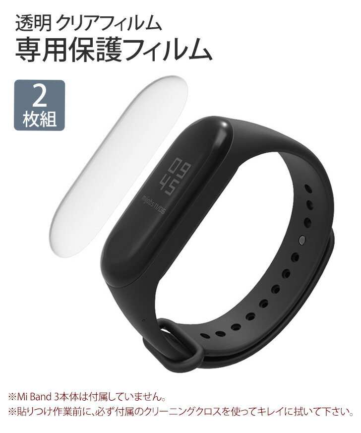 MiBand 3 保護フィルム 2枚セット 2枚組 透明 クリアフィルム 画面保護 スマートウォッチ アクセサリー ウェアラブル 小米 シャオミ Xiaomi 液晶 カバー シート シール プロテクション