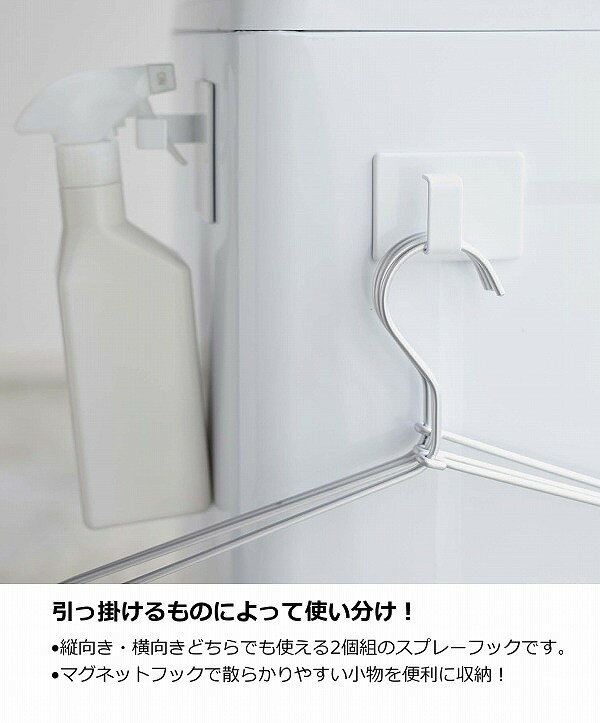 ■縦向き・横向きどちらでも使える2個組のスプレーフック。