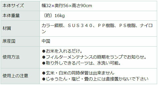 【特長】 ●『お米の鮮度維持』保存温度:約15℃をキープし、食味の低下や鮮度を維持。