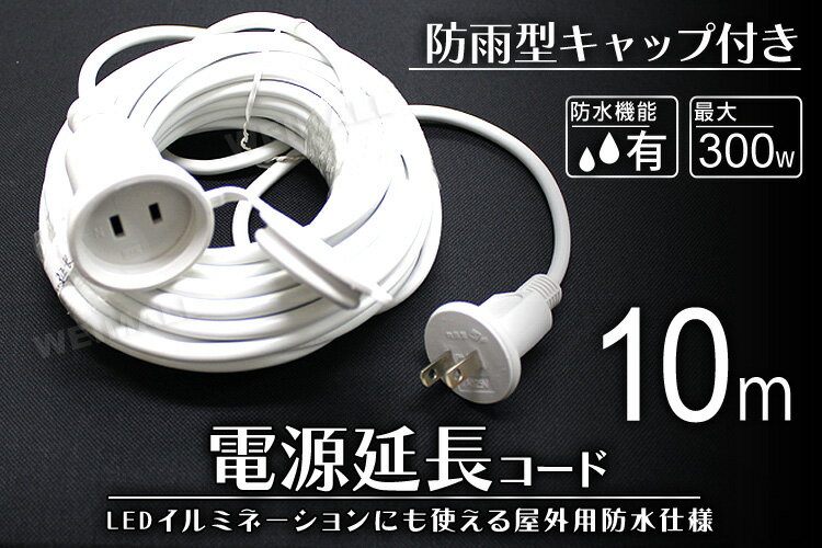 ★スーパーSALE★【6/10限定エントリーで最大P15倍】延長コード 10m 電源延長コード 延長ケーブル 防水仕様 屋外用 [LED ロープライト ネットライト ストレートライト ハロウィン イルミネーション X'mas 電飾 飾り イルミネーションライト デコレーション] 送料無料
