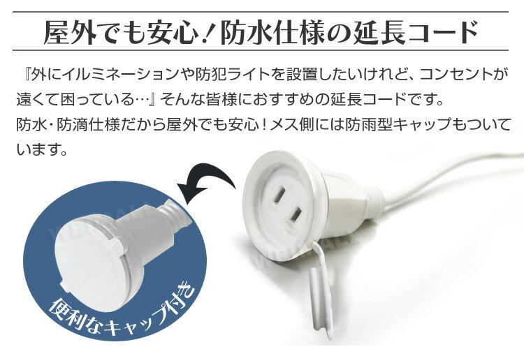 ★スーパーSALE★【6/10限定エントリーで最大P15倍】延長コード 5m 電源延長コード 延長ケーブル 防水仕様 屋外用 [LED ロープライト ネットライト ストレートライト ハロウィン イルミネーション X'mas 電飾 飾り イルミネーションライト デコレーション] 送料無料